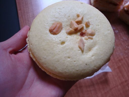 And on top of that I picked out a peanut butter macaron that turned out to be a gigantic specimen. And the middle of it had about an inch of fudge that tasted like eating frosting from a jar. There was no peanut butter so to speak, but it was tasty just the same.
