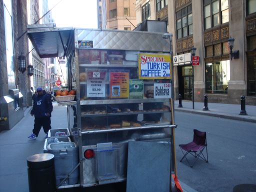 No idea how long they’ve been selling it, or who’s making it, but now you can get some baklava to go with your insanely strong coffee at the Turkish coffee cart on Wall St. & Pearl. The sign on the side says it’s $2, and I’m guessing that’s per piece. Your move, Alfanoose.
