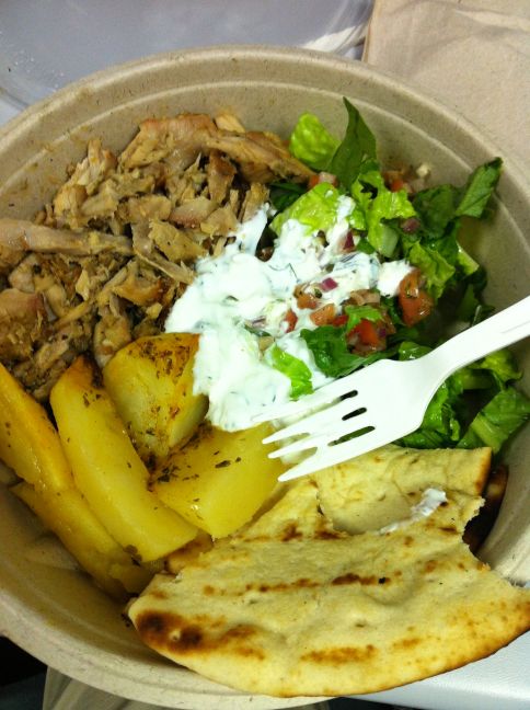 You guys should check out Pita Press on Cedar St. between Pearl St. and William St. I believe this spot used to be occupied by Koyzina Bar and Grill but they shuttered down and it’s replaced by this bright blue “Pita Press” sign. Attached is a photo of the sliced chicken with lettuce, lemon potatoes and real yogurt white sauce. I’ve tried their pork and lamb before and everything tastes great. I want to say this is one of the best Mediterranean style dishes here in FiDi with Zeytuna coming in 2nd.