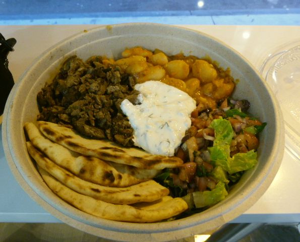 I ordered a platter with lamb and beef, and giant baked beans as my side on the recommendation of the counter staff. It was $9.75 but as you can see it’s a lot of food. The tzatziki was thick with Greek yogurt and the lamb/beef mixture was like the best street meat you could imagine. The beans were tasty but I’ve also heard the lemon potatoes are good. Rounding out the platter was some soft flatbread and a lettuce salad with some black olives thrown in.