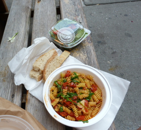 What I love about having SoHo in my coverage area is that a lot of its lunch options aren’t chains and can be within ML price range if you stick to the basics. Pepe Rosso To Go on Sullivan (btw. Prince & W. Houston) had been on my radar for a while after being mentioned in some profiles and also on Lunch Studio. Most of their panini are less than $10 and some of the pastas are if you go meatless. The reason I headed up there was for the lunch special, and I ended up being happy I hopped on the subway for something as lame sounding as pasta.