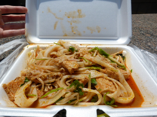 There are a few cold dishes on the menu and that was what I was after since it was upwards of 90 degrees out and Chris had already told us about some of the hot items – the lamb burger and the Mt. Qi pork hand-pulled noodles along with the cold spicy & tingly lamb-face salad. I was after A1- otherwise known as liang pi cold skin noodles ($4.50). The dish is mixed by the guy at the front counter who also takes your order and gives it to you, and brings food to the dining room.You can get the noodles as spicy as you like although I don’t think I’d go with extra spicy unless you really want to feel the burn.