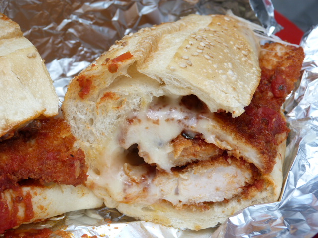 There were either three or four fried chicken filets in here along with a decent gob of mozzarella and enough marinara to taste, but not destroy the bread. And that bread was really good as well – a nice hero that had been toasted a little and did a good job of soaking everything up. I’m not chicken parm expert but I thought this was pretty great. On the plus side, this is definitely enough for two meals.