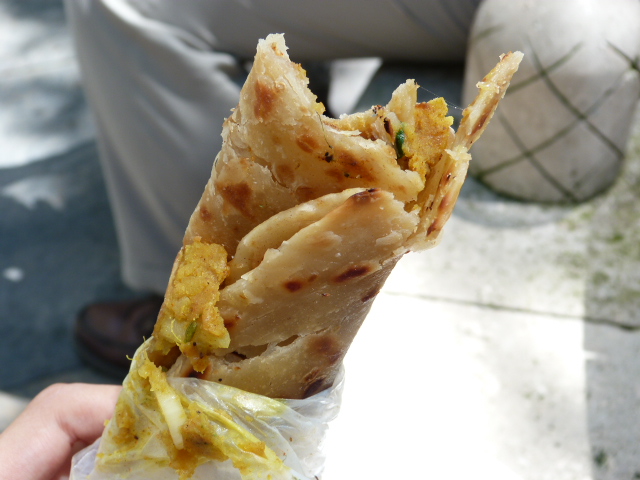 It’s not often that you come across a lunch that’s spicy across the board, but that’s what I found the other day when I finally had a chance to stop by the Desi Food Truck, aka the latest truck to decamp to the Financial District after being kicked out of midtown. They have a vegetarian and meat version of a “Desi lunch special” and since the combination of a kati roll and dal sounded delicious, that’s what I ordered.