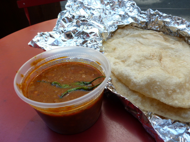 I shunned the steam tables for once and instead ordered “Bombay’s chaat” off the appetizer menu ($5.95) along with chana bhatura ($8) from the “chef’s special” section that also includes something called Indian style fried chicken. (This clearly needs further investigation!). There are also kati rolls and steam table combos for $10 or less but again, I was looking for something different.