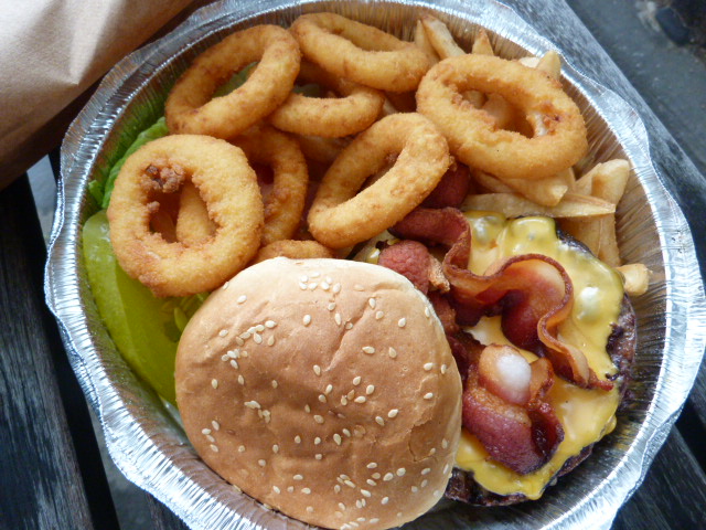 Instead I ordered a bacon cheeseburger with a mix of fries and onion rings ($8). The onion rings added some to the price of my meal which is normally $7.25, so basically this is one cheap lunch for the neighborhood. And you know what, overall it was pretty good!