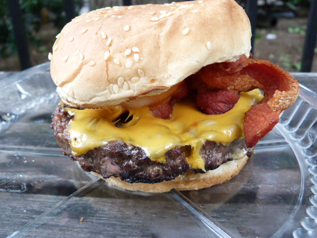 The burgers are 1/2 pound and come with either American or Swiss cheese and two strips of bacon. The burger itself exceeded my low expectations by actually being juicy and tasting of the grill. Parts of it were closer to rare than medium, but hey, no complaints here. The bacon was a little dry and overcooked so I would maybe go with a cheeseburger instead, and what can you really ask of American cheese other than it be melted properly, which this was.