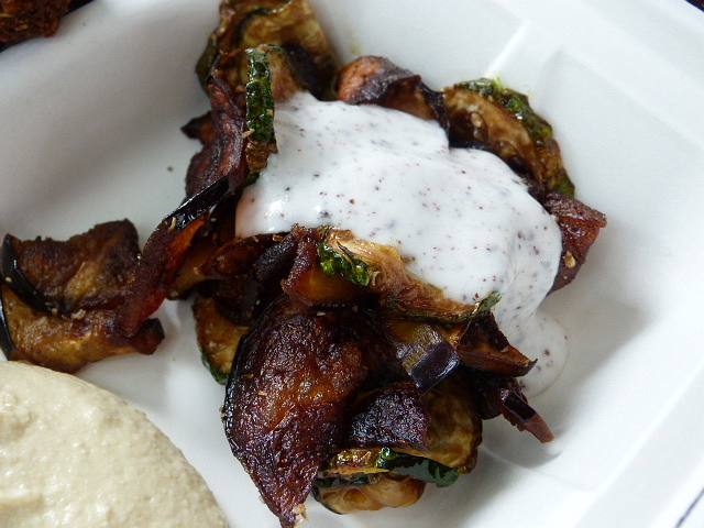 The falafel and awesome pita were the stars of the show here, again suggesting it’s probably a better idea to get a sandwich. The hummus was good and heavy on the lemon while the fried zucchini and eggplant was pretty greasy and was the one miss in a takeout container full of hits.