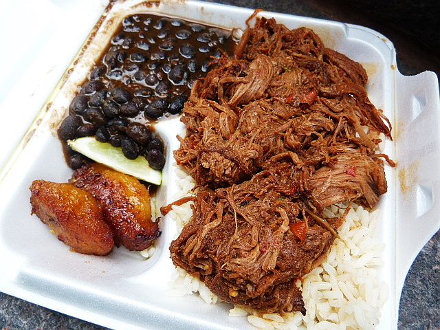 You can get a sandwich (mostly $7) or a platter ($9) and I decided to go with the latter. The choices are pork, mojo chicken or ropa vieja and they all come with white rice, black beans and plantains. My main question when ordering this was exactly how much food I was going to get for the price I was paying. Yes, writing for this site has made me have the mind of a fatty.