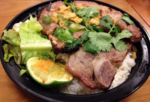 My co-luncher was nice enough to send along their thoughts on the Vietnamese pork chop ($12) and Bangkok chicken platter ($14). Here’s what they had to say on the pork chop: