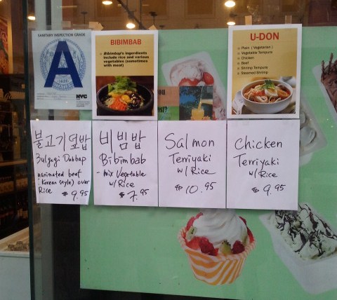 Generic-looking deli Cafe Tomato on Fulton St. (nr. Broadway) still looks pretty generic, but they now have Korean food! I have never eaten here after an initial walk-through yielded nothing special, but this changes the game, especially since it’s a lot closer for those of us in the upper part of the Financial District than Cafe Hanover.