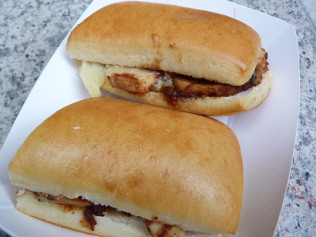 Oh, barbeque chicken sandwich – I wanted to like you so much after spending $9 on you! Alas, I got something that kind of reminded me of a chicken version of a McRib sandwich. Maybe it the was the squishy white bun or the carmelized onions – I’m not quite sure. The high-quality chicken slices were good and there were thick slices of provolone melted over it during a quick trip in the oven behind the counter. While it was heated up nicely, I could have used some toasting on the bun.