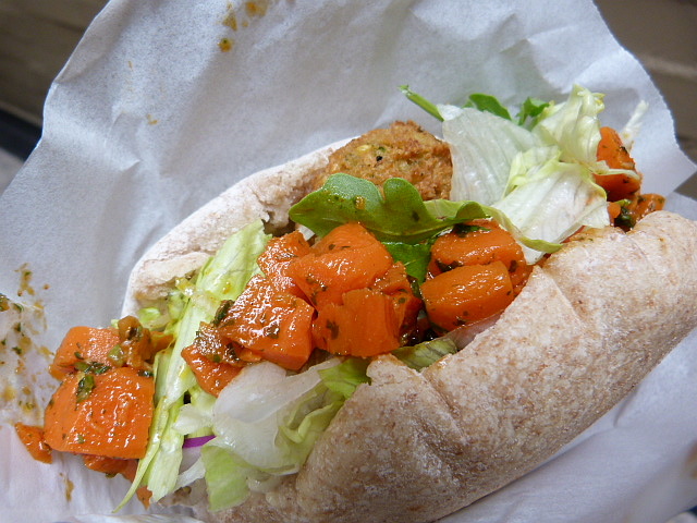 The Casablanca is $7.35 and comes packed with falafel, babaganoush, fried eggplant, lettuce and Morroccan carrot salad. Strangely, the carrots were my favorite part of this sandwich although the fried slices of eggplant nestled in the bottom came in close second.