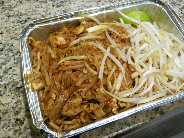 It was shockingly almost empty during prime lunch time so I’m guessing they do a lot of business in take out or delivery. I normally order the same two or three dishes at Thai places (prik khing, pad kee mao, spicy basil fried rice) so I decided to switch it up and order that standby of pad thai ($7.95). The lunch specials are as cheap as $6.95 and they don’t come with any frills of a crappy soup which I was OK with.