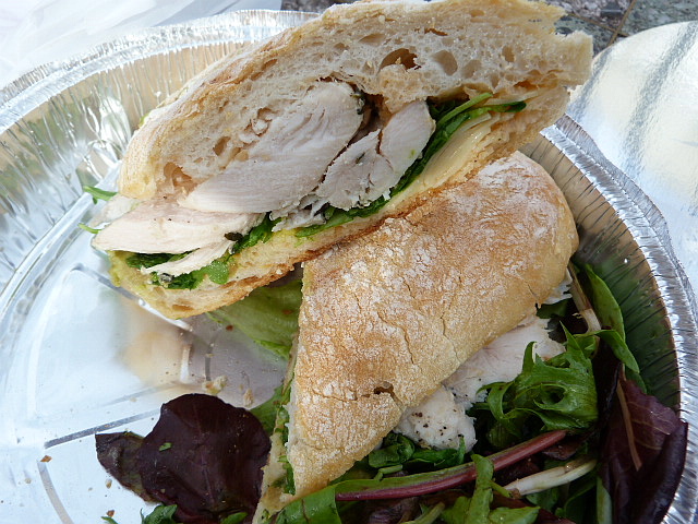 This is a tiny cafe, as is the case with most places in this area. I would recommend either eating in or calling ahead to order so you’re not stuck awkwardly standing in the precious square feet not taken up by tables. That being said, my order for a chicken avocado sandwich (the menu says $7.50, but I was charged $7 including tax) was taken and delivered in fairly quick fashion.