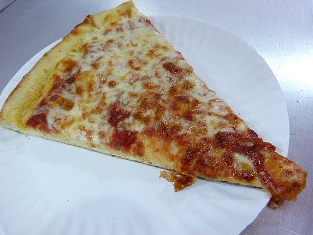Joey’s was the less-crowded of the two places and the offerings were pretty sparse. The spaces for pepperoni and sausage pizza were empty so I was unable to try the namesake and just went for a cheese slice which, like Roll and Go, is $1 with no tax. It got to spend a while in the oven which I appreciated since all too often at these cheap places it barely gets acquainted with heat. The verdict: This was a good piece of pizza, and when you add in the $1 price tag it’s kind of amazing. The crust was really crisp and the cheese plentiful and slightly browned in spots. That’s all I can really ask.