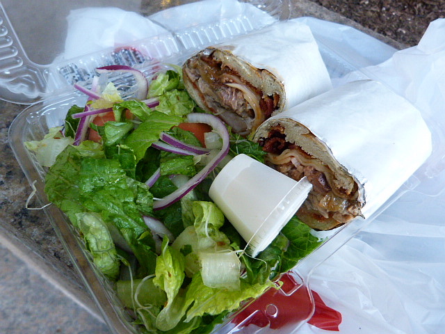They have four sandwiches involving roast pork on the menu under the “signature sandwiches” section and they’re all $7.25 (although I think I got overcharged, so watch out). This includes a little salad on the side because that makes ingesting fatty meats healthier, right?