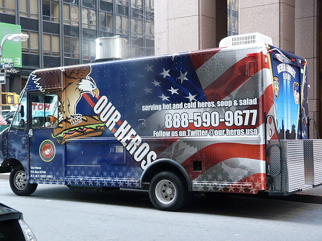 Our Heros Truck, daily at Wall & Water streets, (347) 205-7300, on Twitter