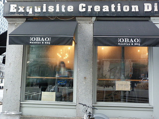 It’s been face-numbingly cold this week and as a result, foods that will help unfreeze said face sound really good all. I hadn’t checked back in with OBAO down on Water (at Hanover Sq.) since the Thai and Vietnamese food purveyor opened back in October. The menu has two noodle soups on it for $9 and I decided it was a good time to try the pho (the other option is a tom yum with shrimp). I’ll go into more detail after the jump, but it’s probably worth your time to walk up to Nicky’s Vietnamese Sandwiches at Nassau & Ann for your pho fix, or order online from Chinatown.