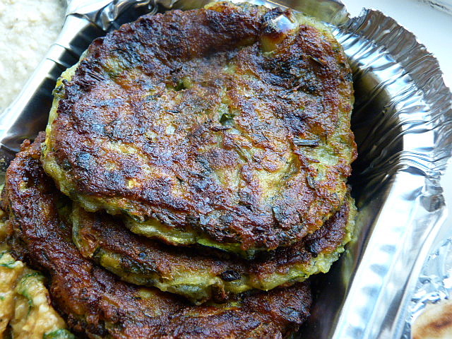 I know many of you are fans of Alfanoose on Maiden Lane (btw. Broadway & Nassau), but based on the couple of times I’ve eaten there I have to say I just don’t get the hype. Maybe at one point their falafel was phenomenal, but these days I’d rather head over the Crisp for one of their wild concoctions. One place that often falls under the radar and offers many of the same items as Alfanoose is The Country Kebab over at Fulton & Gold. A look at the menu showed something called muchver, aka zucchini patties. I’d had something similar at Pita Press and was interested in how Country Kebab’s version compared.