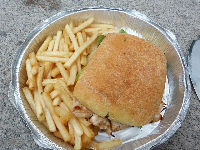 The sandwich was large and simple. The grilled chicken breast was juicy, and the tomato miraculously not mealy. I liked the bun, although I think it would have tasted better if it hadn’t steamed in its aluminum container before I ate it.