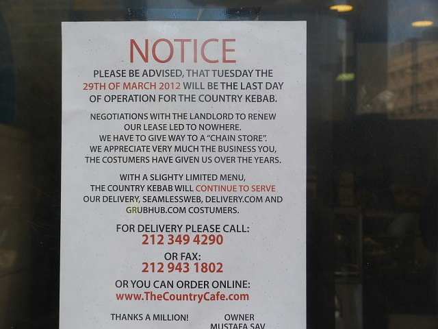 Posted by Andrea H at 9:30 am, March 30th, 2012 under Closed, Financial District, The Country Kebab.
