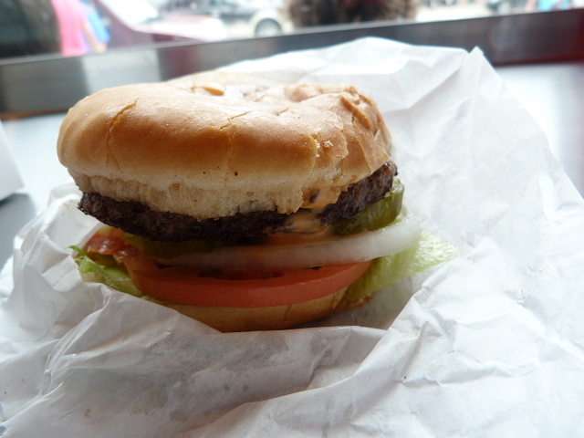 The balance of my single burger was spot on. The patty was thin, but still decent for a sandwich this size and they didn’t overload it with lettuce or tomato. What I did get a lot of was raw onion and the thin, sweet special sauce that both dribbled out the back of the bun. I would recommend eating the burgers as soon as possible as the special sauce causes a fair amount of sogginess.