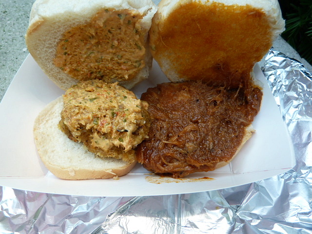 At least a couple of the items are similar to/exactly the same as things you can find at the truck that parks a few days a week at Wall & Water. I’ve sampled the meatball hero, and can tell you that it’s probably just as good in $2 slider form. They also have crab cakes and the pulled pork on the truck on occasion.