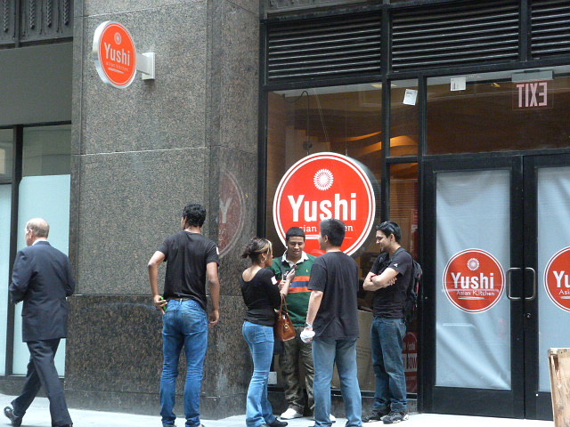 While walking by the “coming slowly” location of Yushi on Pearl St. (btw. Maiden & Cedar) yesterday I noticed signs were up, and although the windows are still papered over there were people coming out who looked like they were there for training. We’ll try to keep you posted on when they’re opening, but if any of you see the doors open and Japanese food coming out, let us know!