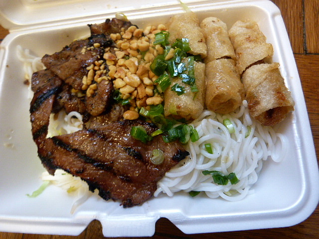 I’m not sure if this would be better eaten in house, but my take-out version was pretty great. Either way, if you’re stuck at jury duty or you work near Vietnamese row (my name, not an official one) on Baxter St., this is a filling and cheap option. Stick with the grilled pork and you’ll be fine.