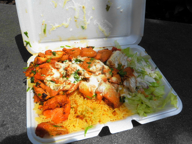 So often the rice at carts is dry or too oily, but the version at Indian Biryani Delights was spot on. It was well flavored and was cooked with just enough oil added to not reach overload when coupled with the meat juices and white sauce. I’d asked for hot sauce, but unfortunately couldn’t taste it.