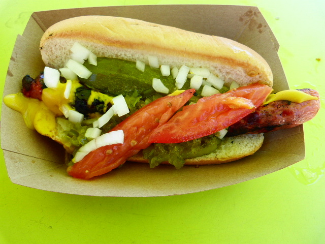 When I got my hot dog ($5) I was both encouraged and disappointed. The dog itself was nicely griddled on the outside, was slightly longer than the bun and had a garden of ingredients on top, but the bun was just your average kind you can buy at a supermarket. The hot dog itself was great, but mostly all I could taste was the really sweet relish and the occasional shot of mustard. I wish there was more celery salt, but that’s my personal preference. Also, I was a little bothered by the $5 price tag, but hey, I paid for it and ate it so I can’t complain too much.