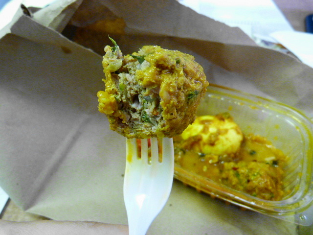 The day I visited poultry dishes included a curry, makhani and something just called “extra spicy chicken.” I went with korma which was chicken meatballs and whole eggs in a bright yellow curry sauce that wasn’t spicy. There were a bunch of vegetable dishes, and I went with one called spicy mixed vegetables and some sweet potatoes which you don’t often see on the steam tables at these places. My naan was cooked to order and took a few minutes so if you’re in a rush you might want to go with the rice.