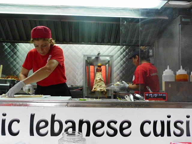 The name of the truck comes from a whip made of garlic, salt, oil and lemon called Toum which was smeared on the giant wrap encasing my makanek (Lebanese beef sausage) sandwich ($7). Seriously, when I unrolled the sandwich it was the size of a small pizza and because this thing was so massive and not cut in half, it became a fork and knife affair.