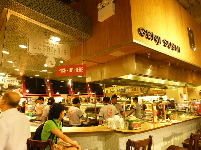 Yesterday was the opening of the rebranded Genji counter inside of Whole Foods Tribeca on Greenwich St. (at Warren) as a Dosateria and Lassi Bar in a first-ever collaboration with Cafe Spice. It turns out the restaurant is more of a split-space now with Japanese food still being made on one side and the rest of the space being used to make Indian dosas, uttapams and Bombay Frankies. You can also get a variety of lassis, or yogurt drinks, some sauces and salads and desserts like gulab jamun from a grab and go case. There were some people standing around to answer questions on ordering (and the ever popular “What’s a dosa?) and I got in the short line to procure some food. My take on what I was served, and why you may want to go vegetarian for lunch here, straight ahead.