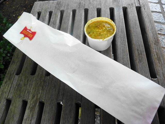 As you can see, if you want a dosa and aren’t eating it in the store, you’ll be carting a hot paper container and possibly a cup of sambar for however many blocks to your office. I really wouldn’t have cared if my dosa got bent, but at least offer me a bag! I’ll chalk this up to first day kinks.