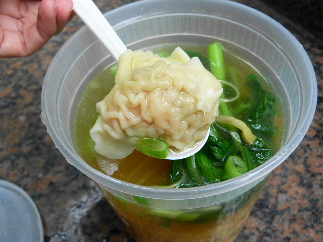 There are about a dozen kinds of noodle soup to choose from including roast pork, fish cakes salt and pepper chicken, fish balls, seafood beef and two with dumplings. Then you choose egg noodles, mai fun, udon or chow fun and specify any extras you want (more vegetables, meat, etc.). I went with the Hong Kong-style wontons with egg noodles ($5.75).