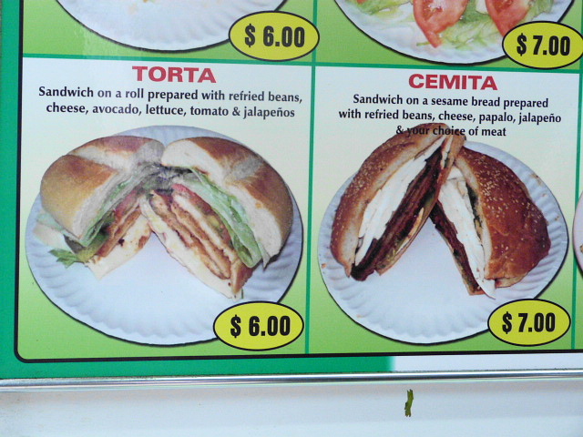 This truck parks near the West 4th St subway stop at nights and I go there all the time. The cemita is definitely one of the best things to order… if I’m up for some grease, I go with chorizo which is great. It’s a good deal for $7, one sandwich will fill you up easily.