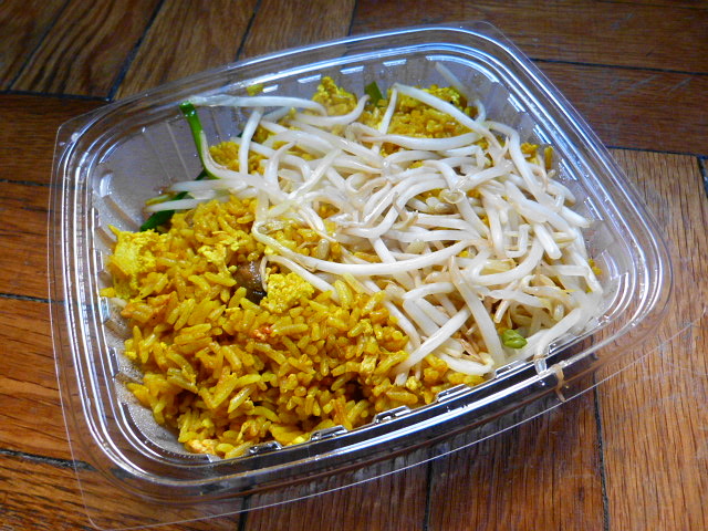 The fried rice was much more of a success. It tasted of curry powder and was studded with fresh mushroom, cubes of tofu, some egg and a few bits of scallion and carrot. It wasn’t overly greasy, and was a good portion (although the picture makes it look smaller than it is).