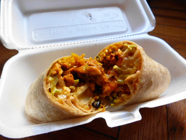 There wasn’t a ton of meat in here, but what was there was chopped up dark meat that was well flavored and not at all dry. I also liked the straight-up yellow rice that didn’t try to be fancy. I could have used a bit more lettuce and tomato in my burrito but that’s probably nitpicky.