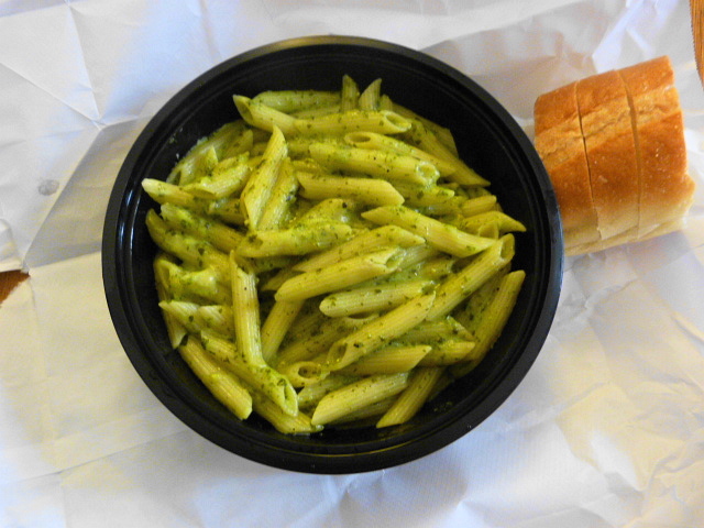 This container was completely full of the penne al pesto that I’d ordered. You get Italian bread for free with all of the lunches, or you can spend another $2.50 for garlic bread.