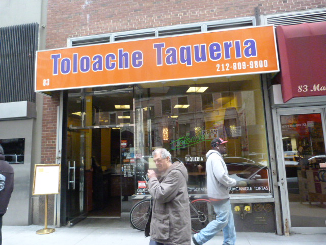 Ever since Toloache Taqueria opened on Maiden Lane (btw. William & Gold), we’ve been treated to a slightly fancier take on Mexican food than is found at Chipotle or other options in the Financial District like Sabor de Mexico or the taco trucks that have started parking down here. I’ve sampled the tacos and burritos, which until a recent price break overshot the $10 mark, but the tortas have always beckoned. As I discovered, at $8 they’re probably the best gut-filling bargain to be found there.