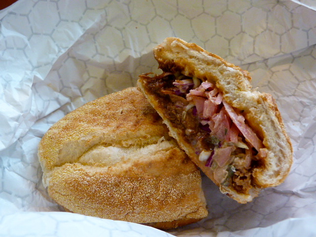 I may have posted this here earlier, but they used to have a Torta that came with a little container of spicy tomato soup– I think it was actually the pork one. It’s supposed to be doused in the stuff like a french dip sandwich. They still make the sandwich but no longer include the soup, which is a bummer. My guess is that it confused people.