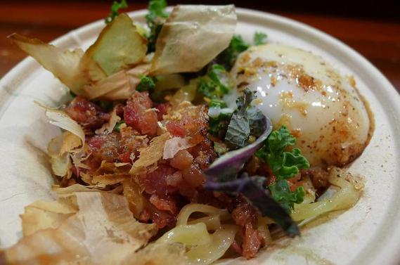 - Bacon and eggs, Japanese style at Yuji Ramen’s pop up. [FitR]