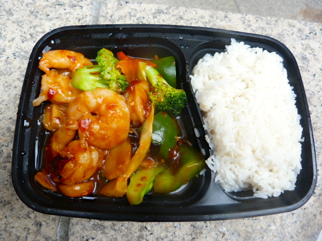 There were four or five large shrimp in here along with some vegetables that were actually fresh and a garlic sauce that not only wasn’t as gloppy as I feared, but actually had some heat to it. Not bad for $7!