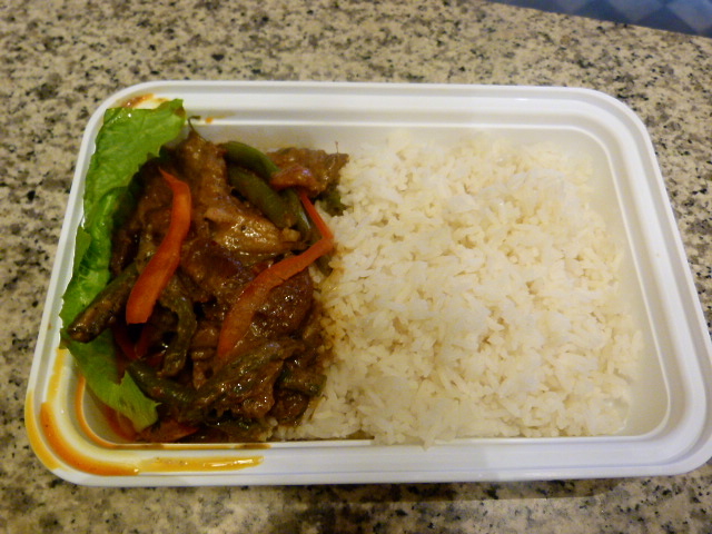 The first thing you should know is they do not skimp on the spices here. Not only did I take a couple of bites during lunch that left me coughing and reaching for water, it was also really well flavored. The red curry paste was long on lemongrass and other flavors, and made for good mixing with the white rice on the side. You get a hodge podge of vegetables including bell pepper and green beans, but primarily you get meat.