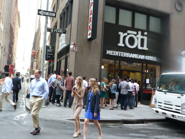 The blocks of Pearl St. just off Maiden Lane have become clogged with high-end chain lunch places, and I’m betting people will frequent Roti Mediterranean Grill if they don’t want to walk a block further for Pita Press.
