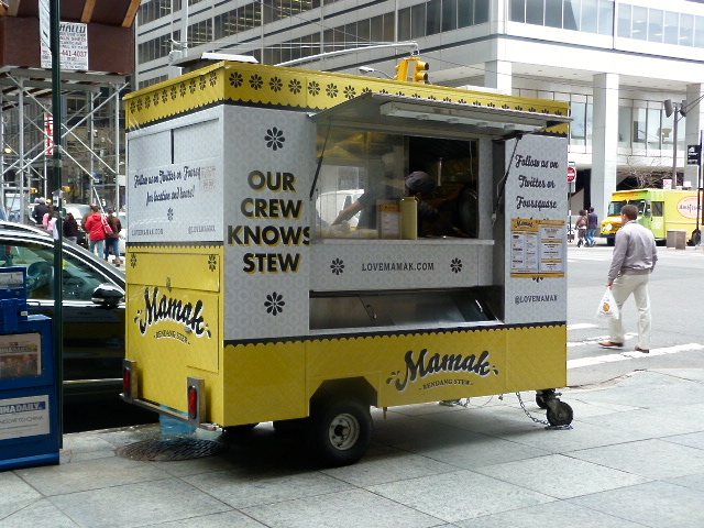 The Malaysian food cart Mamak was nominated, as was Toum Lebanese truck. Mamak started parking at Hanover Sq. & Water St. in April selling stews and other items and apparently has gained quite the following in the interim. Toum comes to the FiDi and some of the food truck lots downtown, and has some seriously delicious Lebanese sandwiches and platters. Nuchas, the truck selling kick-ass empanadas is also nominated in the same category, as is the Sweet Chili truck which is also spanking new and I haven’t had a chance to check it out. Mysttik Masaala and Neopolitan express round out the Rookie nominees.