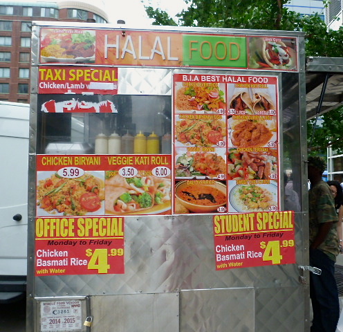 Late last week I stopped by the bank just as a cart on the corner of Greenwich & Murray streets outside was being readied to be driven away at the end of the day. That cart was BIA Best Food, and it had an intriguing menu that included biryani, chicken curry, teriyaki chicken, sweet chili chicken (they must really like chicken) and then there was dal for the low price of $4.