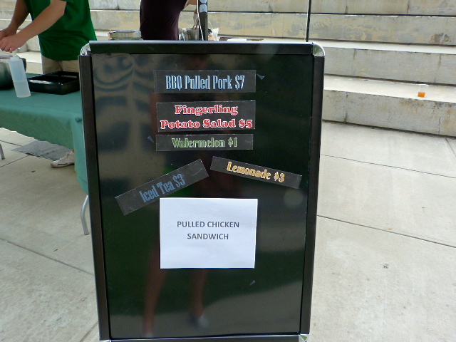 Moving on to the food, the day I went they had pulled pork or pulled chicken sandwiches, fingerling potato salad, watermelon and a couple of drinks on the menu which changes every week. I went for the BBQ pulled pork ($7).